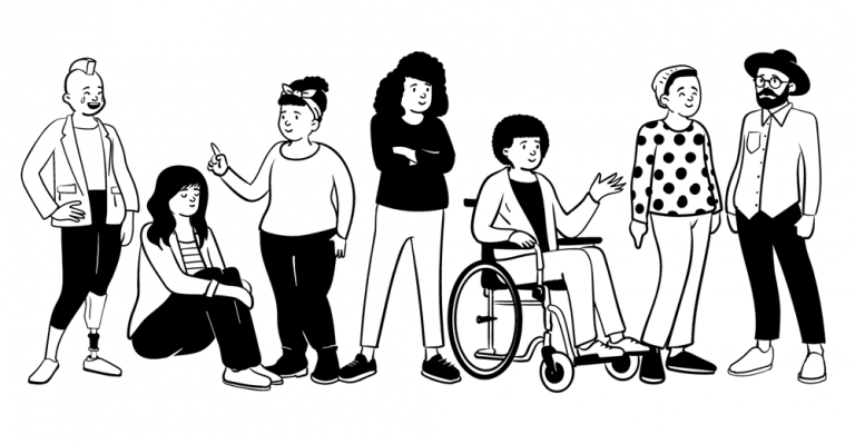 這套人物插圖主要特色為簡約生動的黑白稿,分為半身、全身和坐姿三個大類。設計師可以根據自己的項目需求在圖庫中找到合適的人物混合搭配。